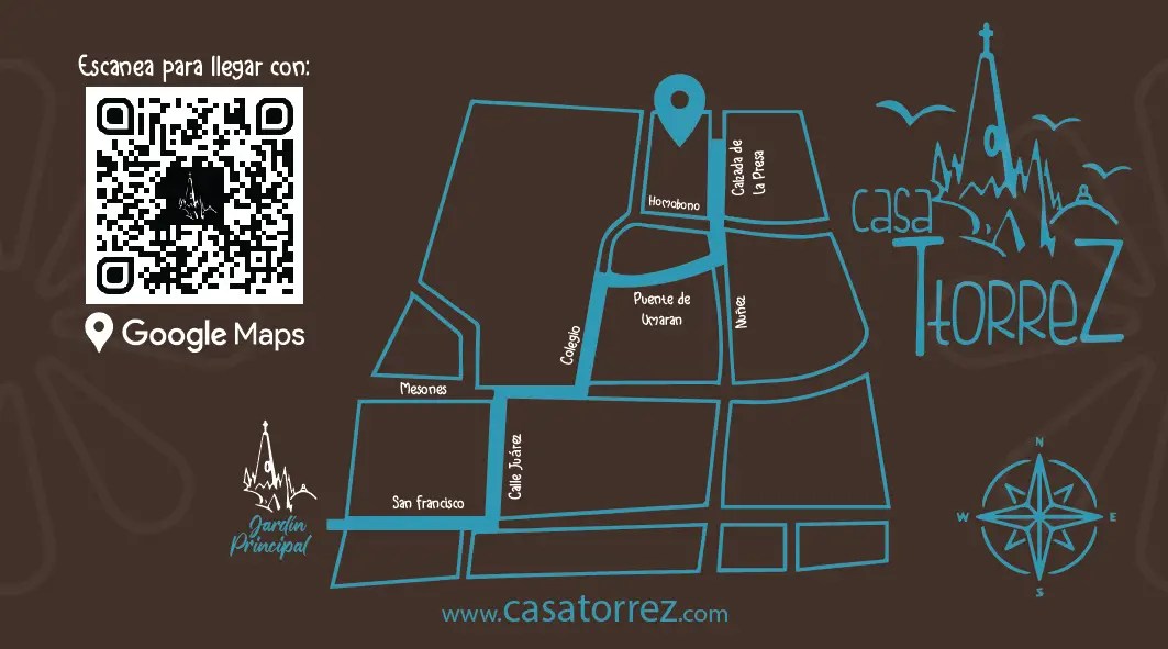 A sólo 10 minutos de la icónica Parroquia de San Miguel Arcangel, y a unos pasos del Mercado de Artesanias, museos, restaurantes, antros y bares.